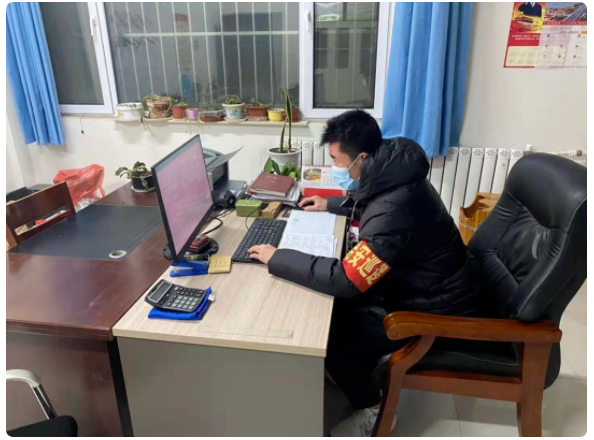在居委会填写表格,整理材料有他的身影
