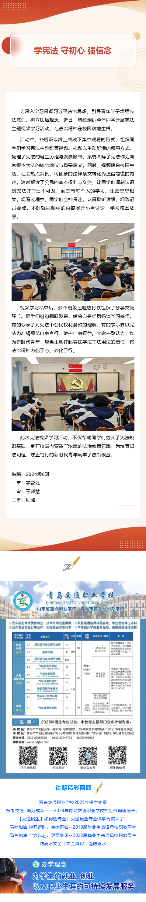 法治教育丨学宪法 守初心 强信念——青岛交通职业学校2024级6班宪法学习活动