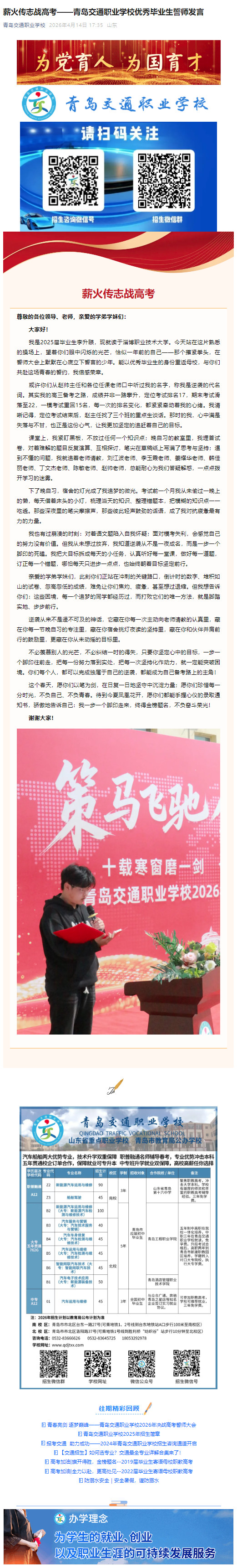 薪火传志战高考——青岛交通职业学校优秀毕业生誓师发言